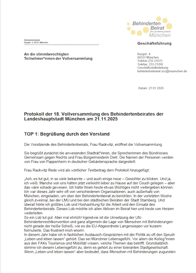 Am Freitag, den 21.11.2025, fand die 18. Vollversammlung des Behindertenbeirats der Landeshauptstadt München statt.